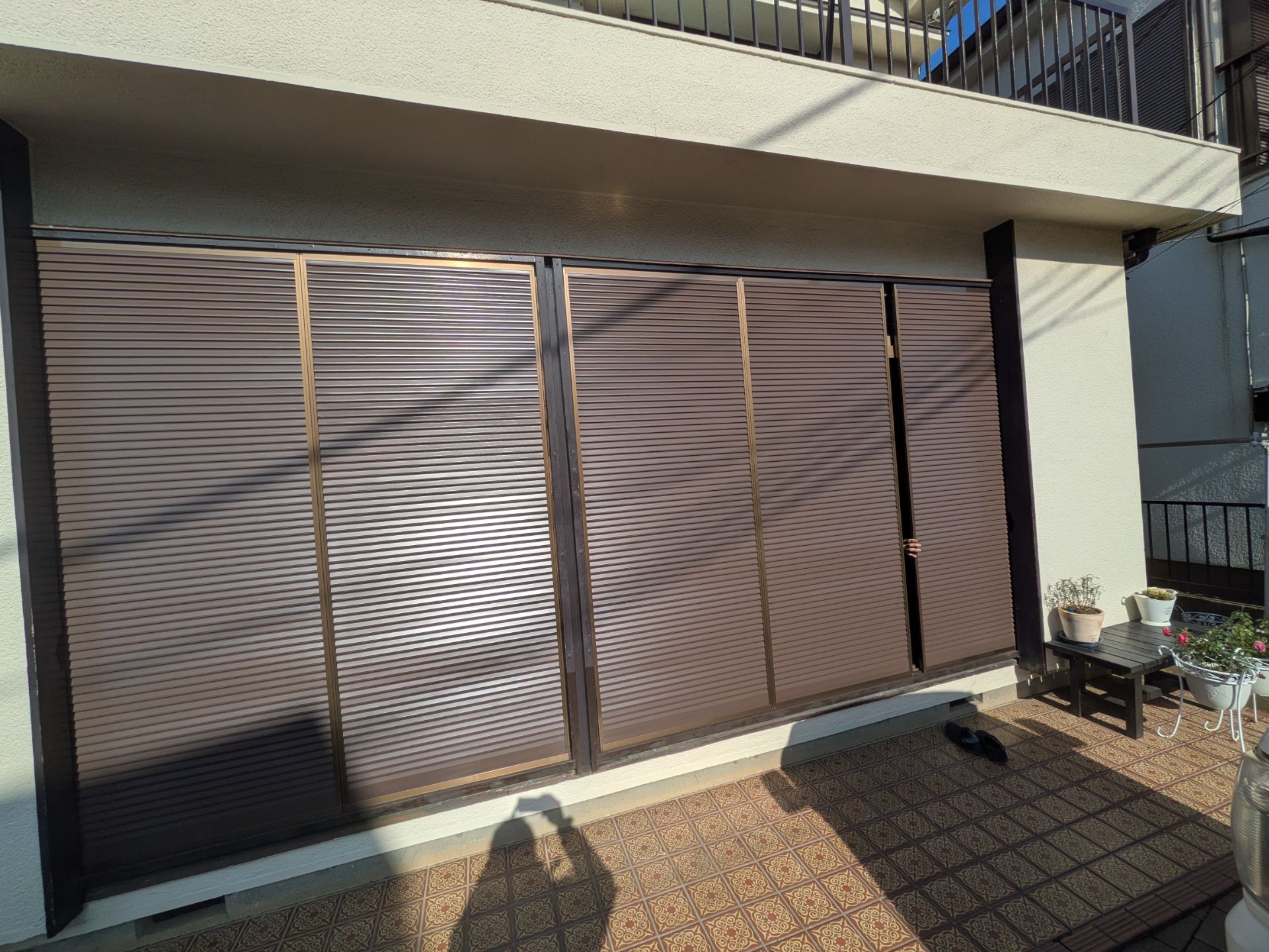 【雨戸交換工事】老朽化によりうまく動かなくなってしまった雨戸。思い出や思い入れも深く、見た目は変えたくないけど、ストレスなく開け閉めできるようにしたい!とのご要望受け、大工さんと一筋の交換。その後防腐塗料施し、新規雨戸パネル建込み。見た目や動作などストレスなく納まりました!