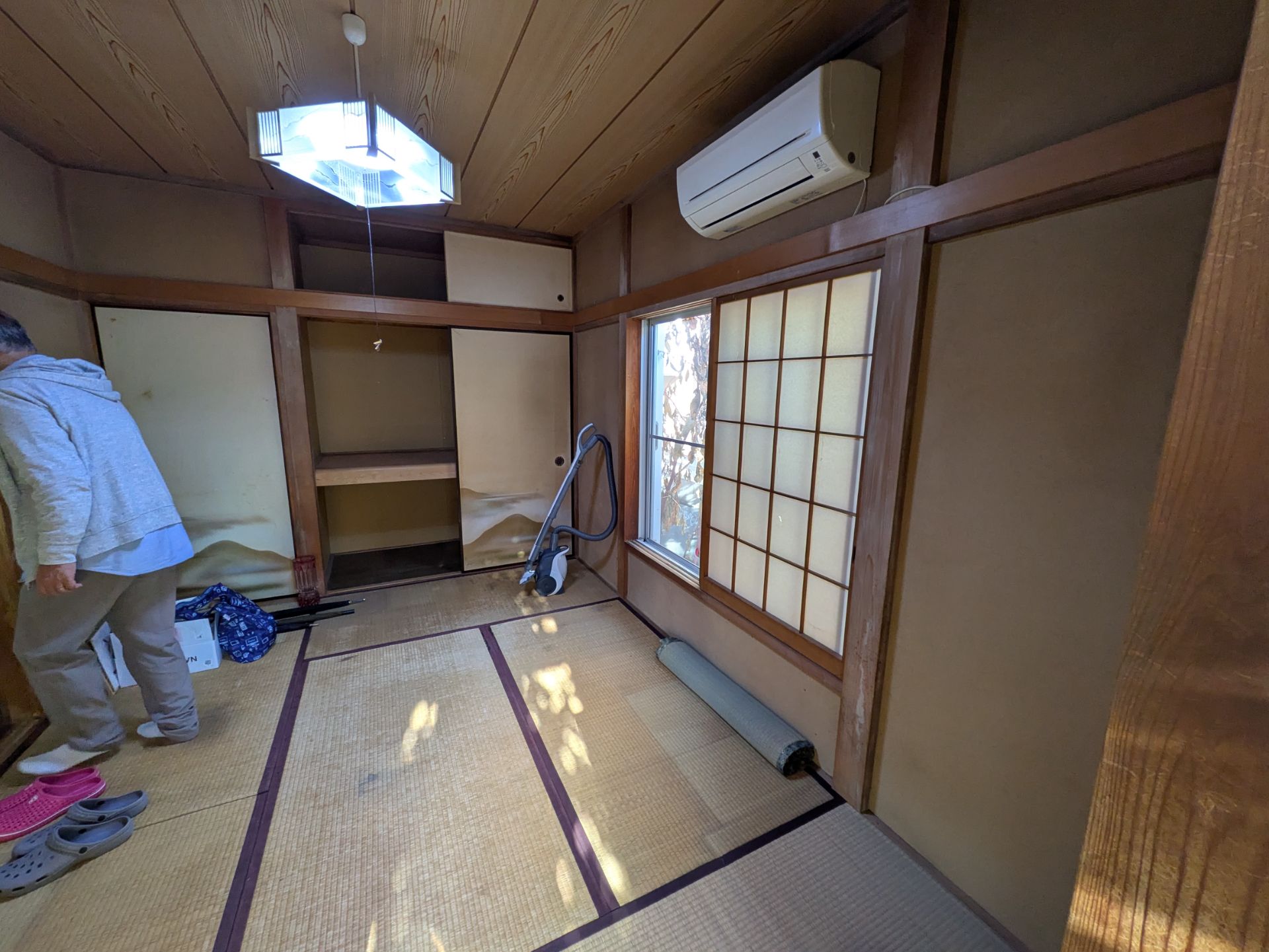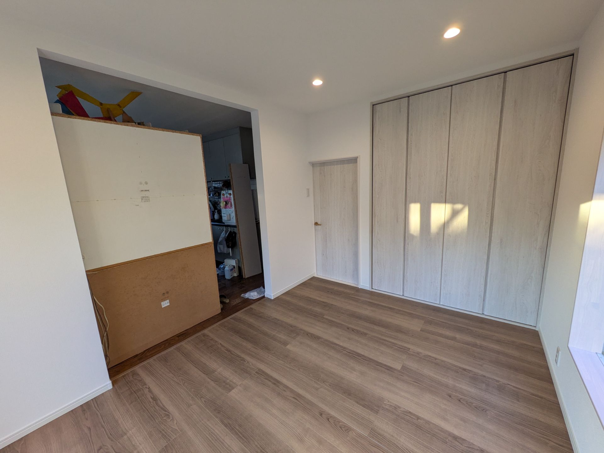 【和室改修工事】和室を洋室にし、押入れも使い勝手良くしたい!とのご要望受け、真壁和室から大壁洋室にリフォーム!また押入れはクロゼットにし枕棚、ハンガーパイプを設置し収納力をアップ!照明はサービスでダウンライトに交換!リビングを広く使えるようになった為、アンテナ線の増設やエアコン新規設置も!大変使い勝手良く納まりました!
