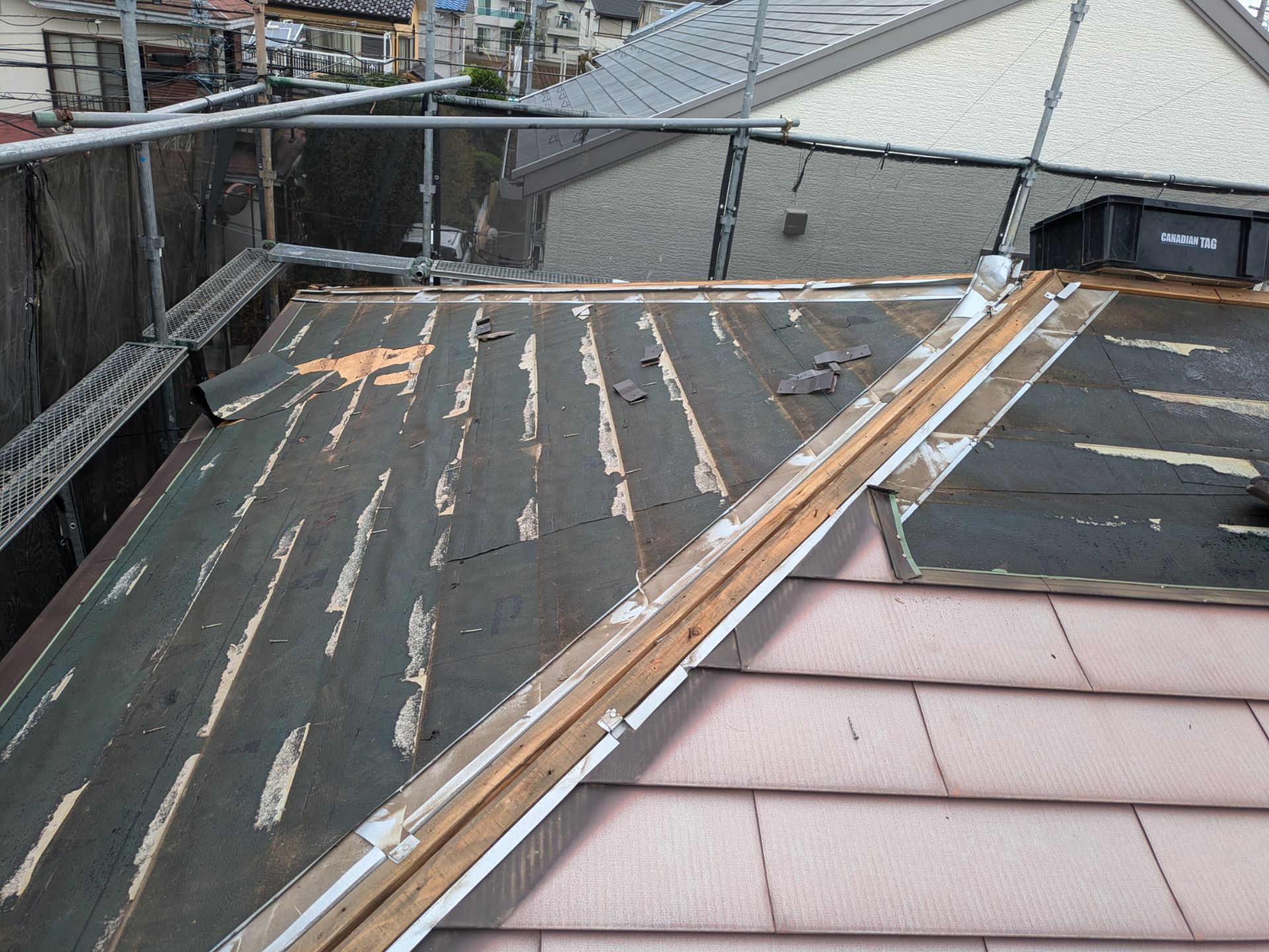 古くなった既存屋根を剥がし、防水紙のやり替え、新規屋根材(シングル葺き)施工費!