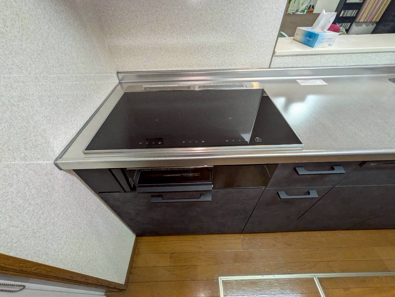 【キッチン改修工事】使い古したキッチン下台のみ交換し使いやすいものにしたい!!とのご要望にて、ショールームもご案内し、キッチン高さもこれまでのものより高くし、IHクッキングヒーター、食洗器も新調し使い勝手良くなりました!